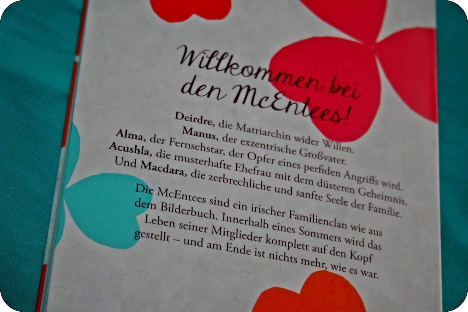 In diesem Buch geht es um die Familie McEntee und ihre Mitglieder. Die Autorin entführt ihre Leser/Leserinnen mit diesem Familienclan nach Irland und wir erleben die Mitglieder rund um den achtzigsten Geburtstag des Familienoberhauptes Deirdre. Man erlebt alltägliches auf eine teils lustige, teils tragische, aber immer liebevolle Art und Weise.