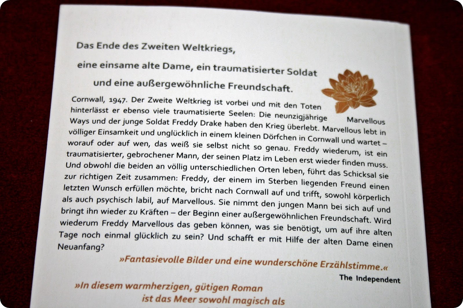 Das Buch spielt in Cornwall im Jahr 1947. Als der junge Soldat Freddy einem Freund verspricht, dessen sterbenden Vater, einen Brief nach Cornwall zu bringen, trifft er auf Marvellous Ways. Marvellous fühlt sich wohl in ihrer selbstgewählten Einsamkeit, aber als sie auf Freddy Drake trifft, nimmt sie den gebrochenen Mann bei sich auf. Schon nach kurzer Zeit entwickelt sich eine großartige Freundschaft zwischen den beiden. Doch können sich zwei so verschiedene Menschen wirklich dabei helfen, das zu bekommen, was sie wollen und brauchen?