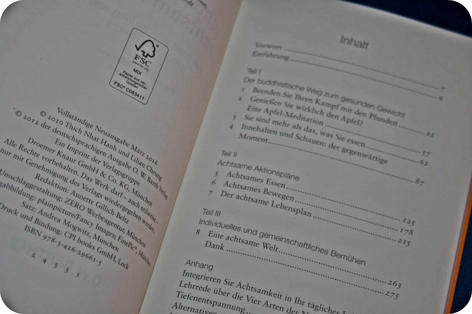 Für Neueinsteiger in das Thema Achtsamkeit und Meditation ist dieses Buch sicherlich hilfreich und interessant zu lesen, ich habe vieles schon aus anderen Büchern gewusst und war daher ein bisschen enttäuscht. Was ich aber als wirklich gut empfunden habe waren die Meditationen und die Hinweise zur Durchführung. Trotzdem muss ich sagen, dass ich mir andere Inhalte erhofft habe. Auch die Verknüpfungen zum Essen fand ich zwar solide, aber nicht besonders, oder neuartig! Irgendwie hat man vieles davon schon in anderen Werken gelesen.