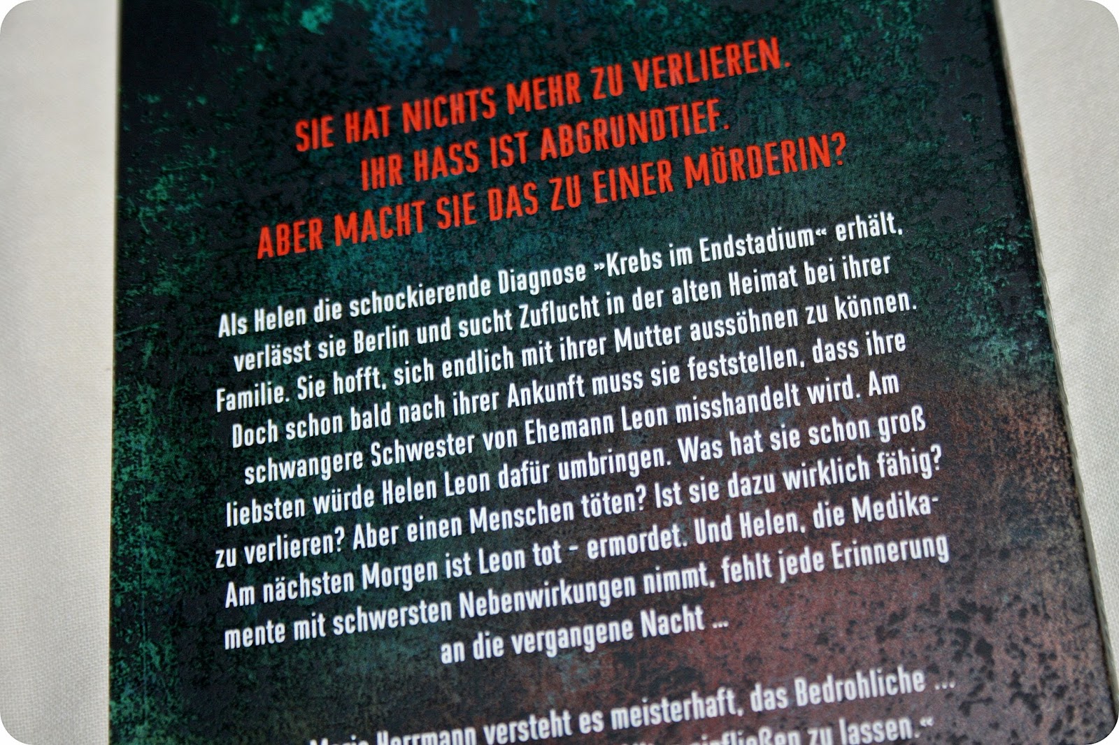 In der Heimat angekommen muss sie dann erfahren, dass ihre Schwester Kristin von ihrem Mann Leon misshandelt wird. Voller Wut auf ihn malt sie sich aus, dass es besser wäre, wenn Leon tot wäre. Aber einen Moment später ist sie sich sicher, dass sie keinen Menschen umbringen könnte. Als sie am nächsten Tag erfährt, dass Leon tot aufgefunden wurde ist Helen geschockt und das schlimmste ist, dass sie aufgrund ihrer Medikamente keine Erinnerung an die letzte Nacht hat …