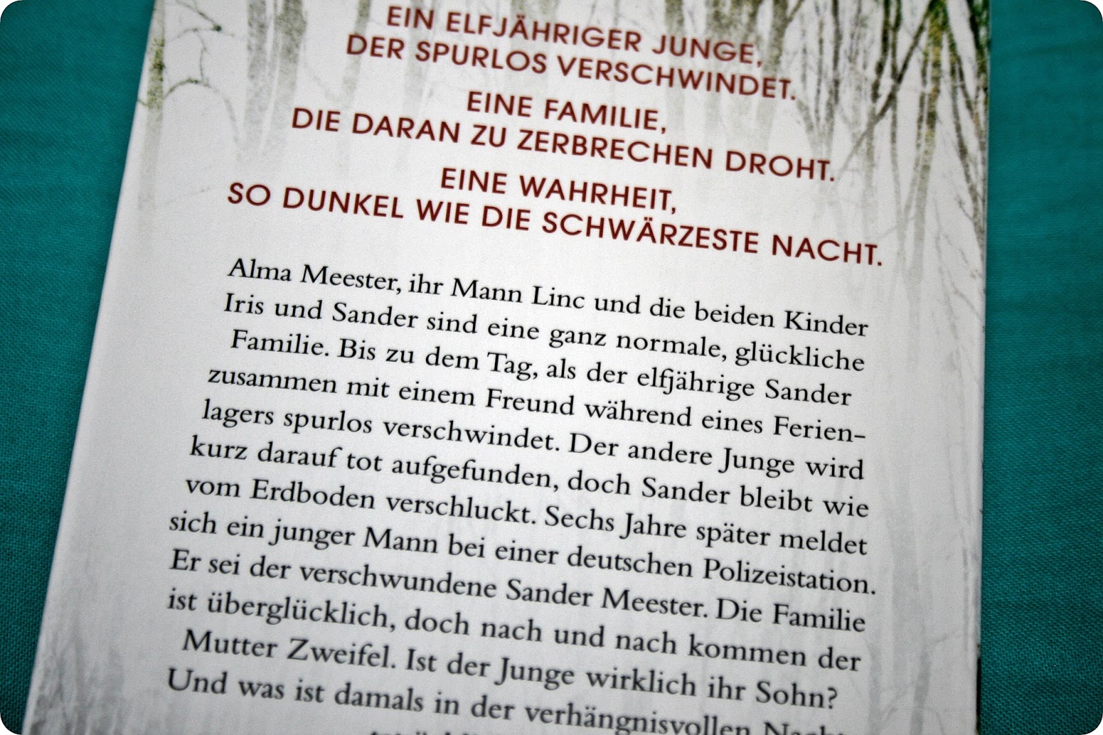 Die Autorin beschreibt zunächst die Situation der Familie Meester, nachdem Sander verschwunden ist. Hier war ich begeistert, dass sie, für meinen Geschmack, das genaue Mass gefunden hat. Es gab genug Einblicke um mitfühlen zu können, die Situation wurde gut erklärt, aber es wurden auch nicht unnötig emotionale Elemente eingebaut. Das ist wirklich eine Kunst!