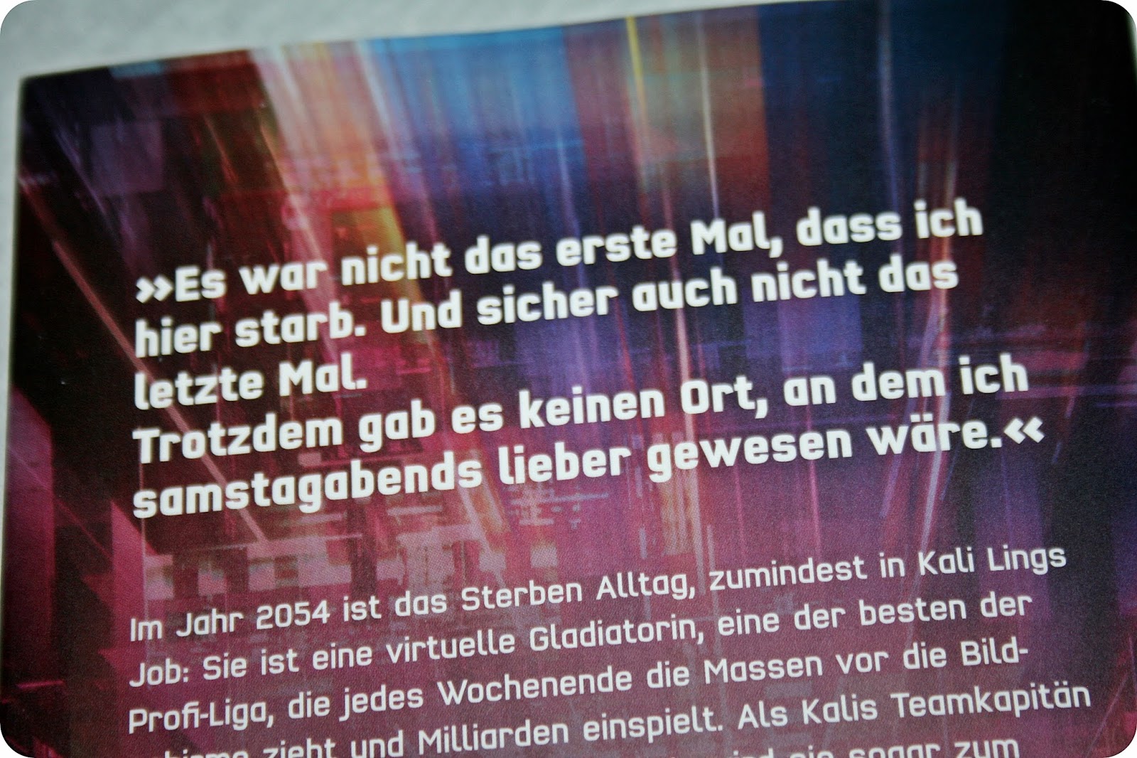 Der Einstieg in diese Geschichte ist mir sehr gut gelungen. Holly Jennings hat mich als Leserin direkt ins Geschehen geworfen, was ich klasse fand, da ich so direkt ein Bild von Kali’s Job als virtuelle Gladiatorin bekommen habe. Erzählt wird die Geschichte in Ich – Form aus Sicht der Protagonistin, was dem Leser/der Leserin ihre Gefühle und Gedanken gut näherbringt, aber gleichzeitig auch das drumherum nicht aus den Augen lässt. Der Schreibstil der Autorin ist bildhaft und flüssig zu lesen. Ich konnte mir sowohl die Kämpfe in der virtuellen Arena, als auch Kali’s reales Leben sehr gut vorstellen.
