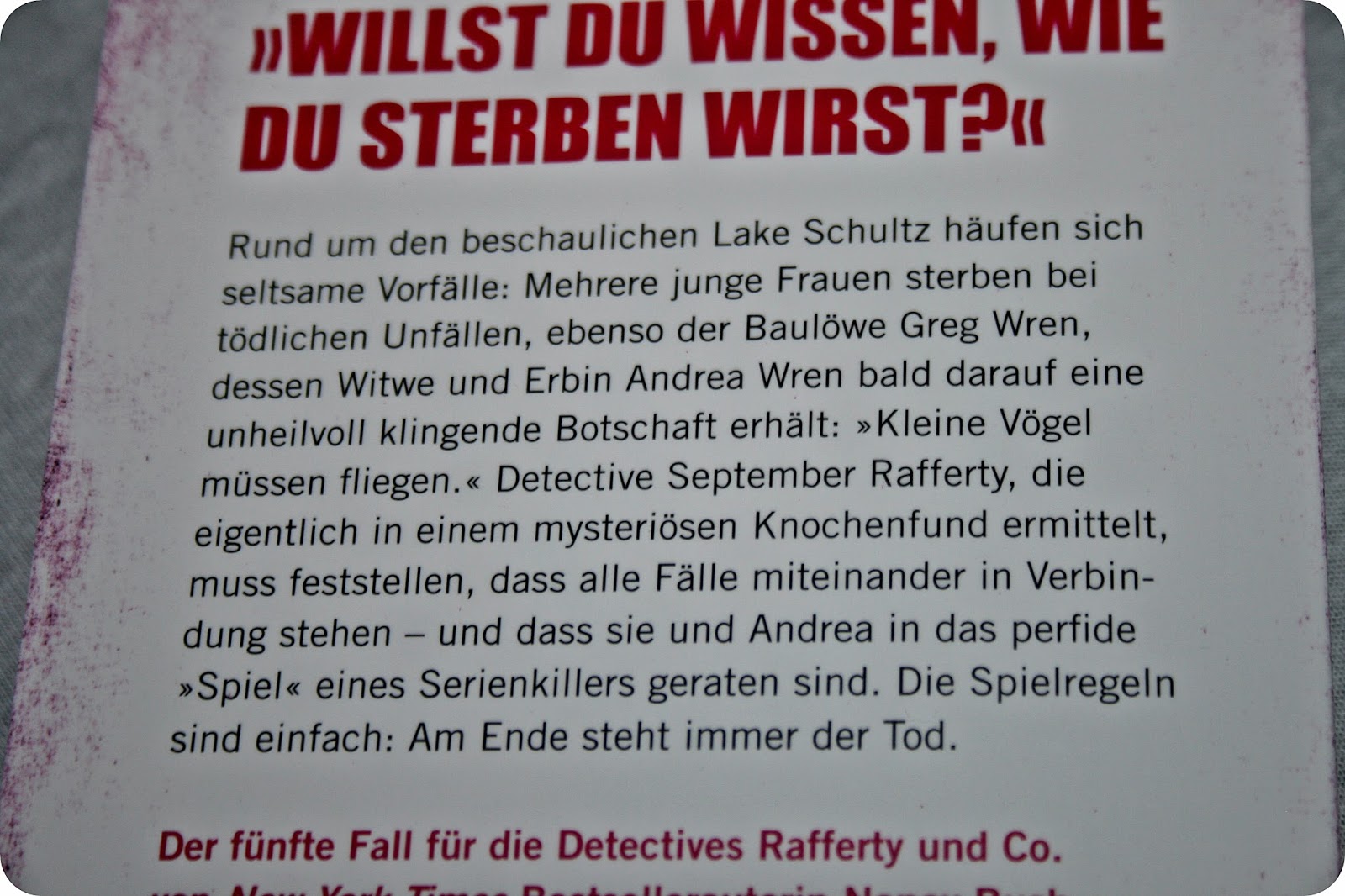 “Dafür musst du sterben” ist der fünfte Band einer Thrillerreihe der Autorin Nancy Bush. Nachdem mir die vorigen Bände immer recht spannende Lesestunden beschert haben, wollte ich natürlich auch gerne wissen, welches neue Ermittlerpärchen mich in diesem Teil erwarten und die bekannten Charaktere unterstützen würde.