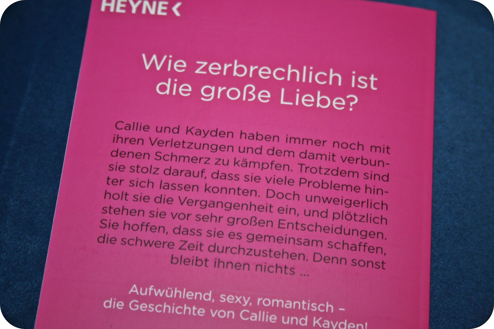 Die Handlung war spannend und sehr emotional und beide Charaktere haben noch einmal Schwierigkeiten ins Auge zu sehen und diese zu überwinden. Callie war schon zu Beginn des Buches sehr stark und ich fand es großartig wie sie sich seit den ersten beiden Bänden weiterentwickelt hat. Kayden’s Entwicklung findet zum Teil noch in dieser Geschichte statt, auch wenn die Ansätze schon in den vorigen Bänden zu erkennen waren. Beide Charaktere haben insgesamt eine tolle Entwicklung gemacht und es war sehr emotional und spannend das Ganze mitzuverfolgen. Das Ende des Buches mit einem kleinen Epilog war schön, stimmig und authentisch.