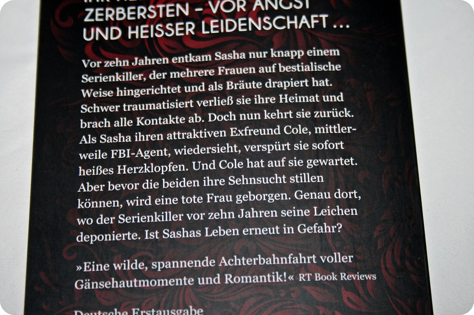 Schnell trifft sie auf alte Bekannte und auch auf ihren Ex – Freund Cole, der mittlerweile beim FBI arbeitet. Doch bevor sich Sasha Gedanken machen kann, was ihr verräterisches Herz für Freudentänze aufführt, wenn sie ihn sieht, wird eine Frau ermordet aufgefunden – und das genau an der Stelle, wo der Serienkiller vor zehn Jahren auch schon seine Opfer abgelegt hat …