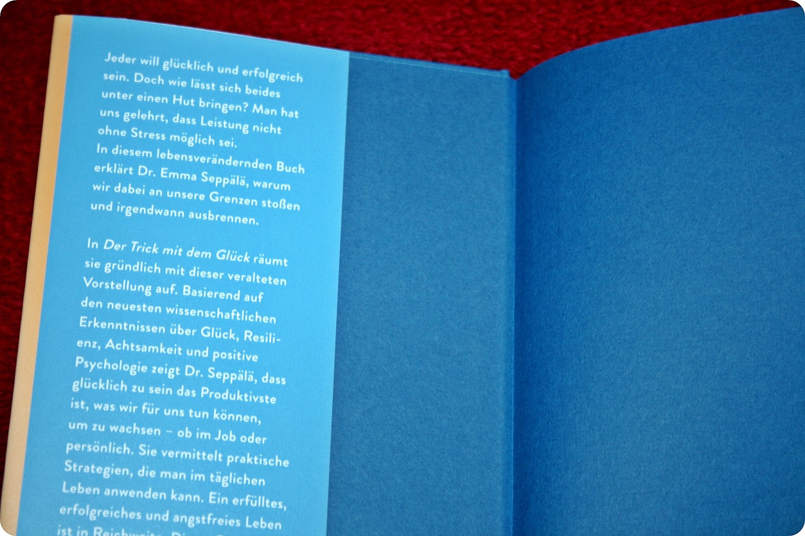 “Der Trick mit dem Glück” ist ein Sachbuch/Ratgeber der Autorin Dr. Emma Seppälä. In diesem Buch geht es, wie der Titel schon verrät, um das Thema Glück im gesamten und wie man es erreichen kann, mehr Glück in seinem eigenen Leben zu erlangen.