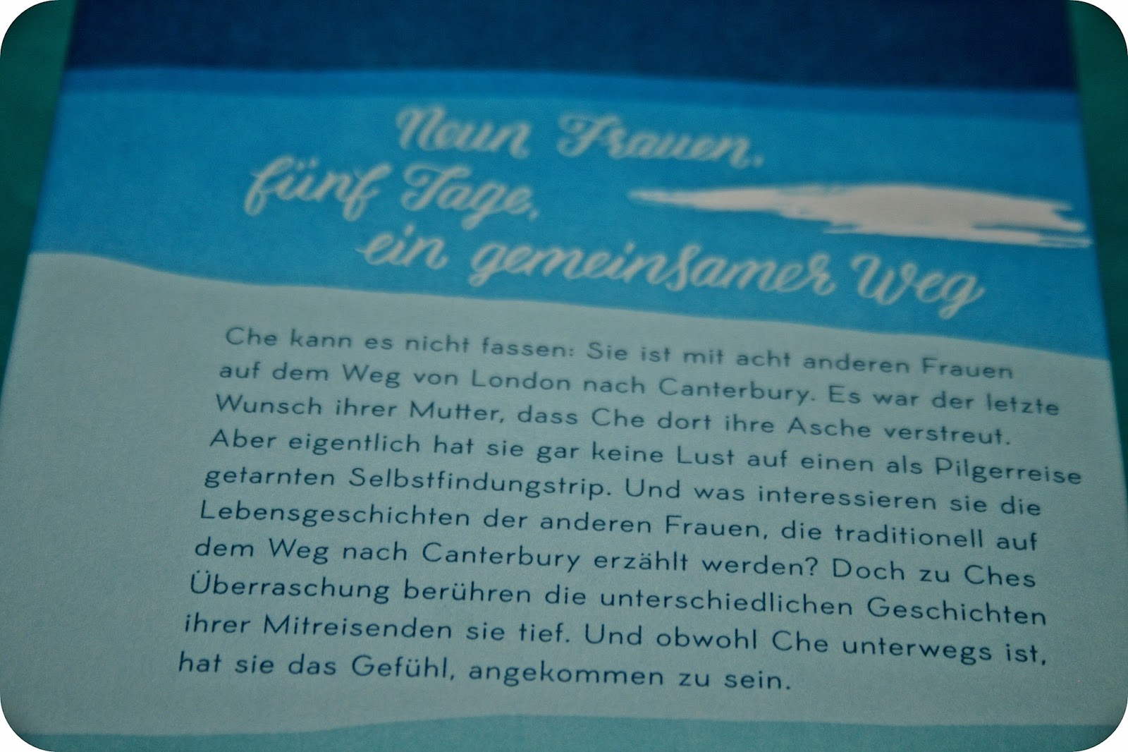 In diesem Buch geht es um die Protagonistin Che. Che hat vor kurzem nicht nur die Trennung von ihrem Freund verkraften müssen, sondern auch den Verlust ihrer Mutter. Diese hat ihrer Tochter in einem Brief mitgeteilt, dass sie sich wünscht, dass Che ihre Asche in Canterbury verstreut. Aus diesem Grund ist Che nun, gemeinsam mit acht anderen Frauen auf dem Weg dorthin und zwar als Pilgerreise.