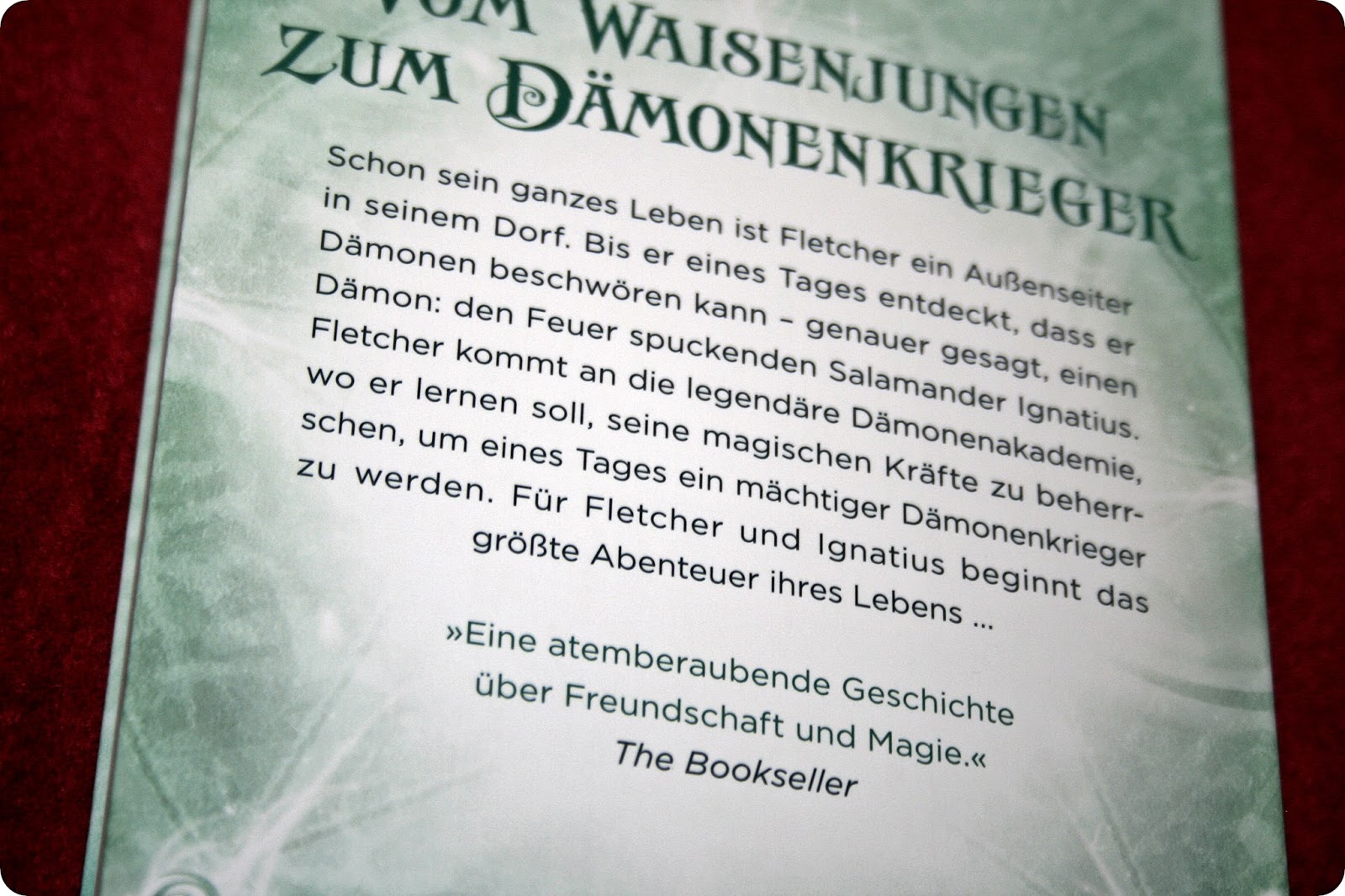 Doch eines Tages bekommt Fletcher ein altes Buch geschenkt, und durch seine Gabe beschwört er daraus einen kleinen, feuerspuckenden Dämon, den er Ignatius nennt. Als Fletcher eines Nachts in arge Bedrängnis gerät, ist er gezwungen aus Pelz zu fliehen und auf seiner Flucht begegnet ihm ein Lehrer der sogenannten Dämonenakademie, der ihm damit unverhofft einen Weg für seine Zukunft präsentiert. Doch Fletcher konnte nicht ahnen, dass die Zeit auf der Dämonenakademie genauso gefährlich werden könnte, wie seine Zeit in Pelz …