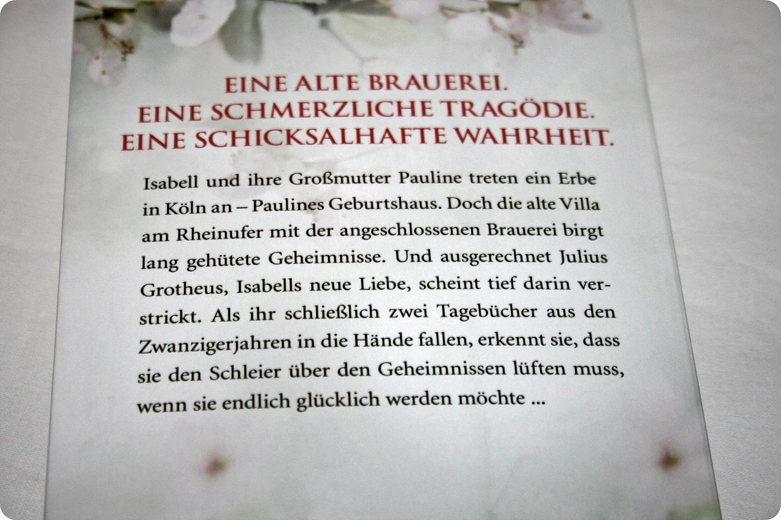 Zudem muss sich die Protagonistin fragen, ob ihr Liebesglück mit Julius in irgendeiner Form mit den Geheimnissen ihrer Familie zusammenhängen könnte. Denn schon nach kurzer Zeit wird Isabell klar, dass ausgerechnet Julius scheinbar sehr tief in die familiäre Tragödie verstrickt ist. Und während Isabell sich noch fragt, ob ihre junge Liebe das überstehen kann, stößt sie auf zwei Tagebücher aus den 1920er Jahren, die letztendlich helfen können das Geheimnis um alle damaligen Geschehnisse zu lüften …