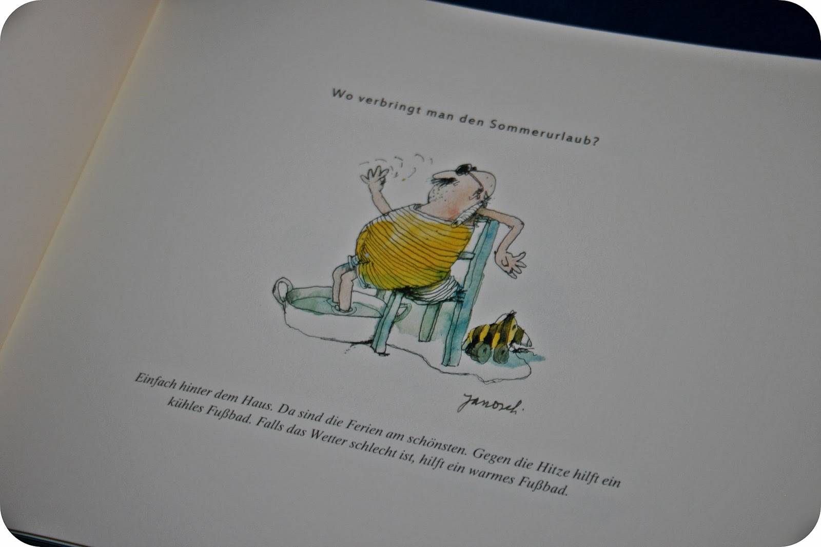 Das Buch ist von Janosch illustriert und die Zeichnungen, sowie auch die kurzen Texte sind sehr passend und haben mir sehr gut gefallen! Das Buch ist vielseitig und der Leser/ die Leserin findet die verschiedensten Themen und Wondrak’s Tipps und Ansichten dazu!