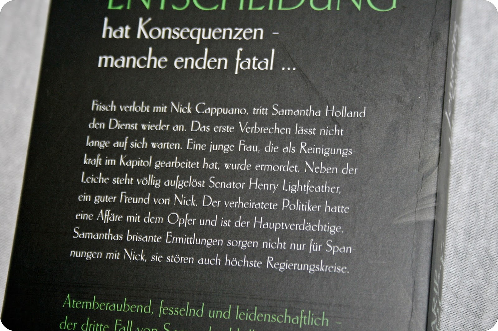 In diesem Thriller geht es um die Protagonistin Samantha Holland. Samantha, von allen nur Sam genannt, ist seit kurzem ganz frisch verlobt mit ihrem Traummann Nick Cappuano. Als sie ihren Dienst wieder antritt bekommt sie es gleich mit einem Fall zu tun, bei dem sich ihre Arbeit, mit Nick’s Wirkungsbereich überschneidet, was ihr nicht gefällt, aber nicht zu ändern ist.