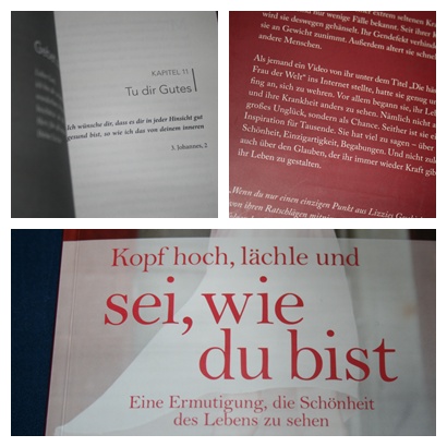 Die Autorin spricht über ihr Leben und ihre Erfahrungen, aber sie äußert auch ihre Meinung zu Begabungen und Einzigartigkeit, sowie natürlich zum Thema Schönheit. Ihre Sichtweisen dazu zu lesen fand ich beeindruckend und authentisch und man kann der Autorin glauben, was sie schreibt. Der Schreibstil von Lizzie ist leicht und gut verständlich, aber auch voller Emotionen.