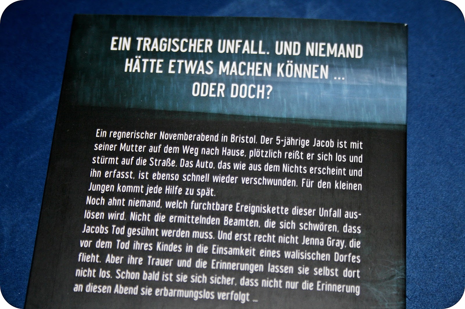 Ein regnerischer Novemberabend in Bristol. Der 5 – jährige Jacob ist mit seiner Mutter auf dem Weg nach Hause, plötzlich reißt er sich los und stürmt auf die Straße. Das Auto, das wie aus dem Nichts erscheint und ihn erfasst, ist ebenso schnell wieder verschwunden. Für den kleinen Jungen kommt jede Hilfe zu spät. Noch ahnt niemand, welch furchtbare Ereigniskette dieser Unfall auslösen wird. Nicht die ermittelnden Beamten, die sich schwören, dass Jacobs Tod gesühnt werden muss. Und erst recht nicht Jenna Gray, die vor dem Tod ihres Kindes in die Einsamkeit eines walisischen Dorfes flieht. Aber ihre Trauer und die Erinnerungen lassen sie selbst dort nicht los. Schon bald ist sie sich sicher, dass nicht nur die Erinnerung an diesen Abend sie erbarmungslos verfolgt …