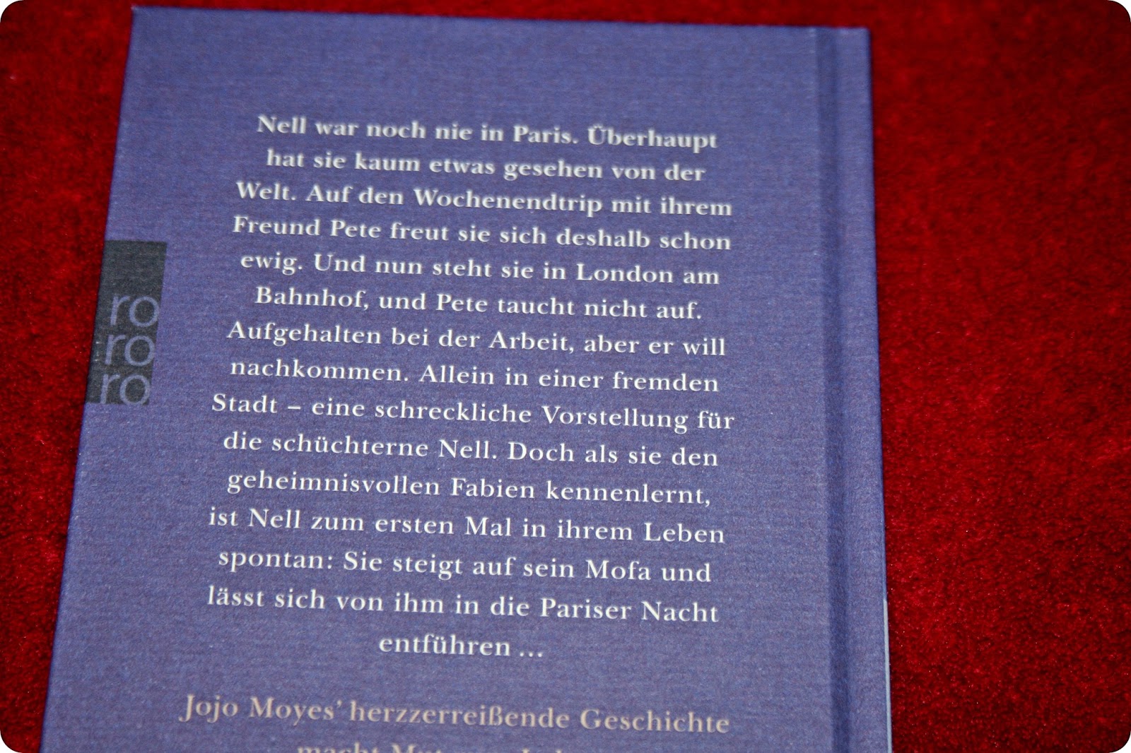 In diesem Buch geht es um die Protagonistin Nell. Nell hat noch nicht viel von der Welt gesehen und freut sich daher unbändig auf den Wochenendtrip mit ihrem Freund Pete. Die beiden wollen nach Paris und Nell ist voller Neugier. Doch als sie am Londoner Bahnhof steht und auf Pete wartet, taucht dieser nicht auf. Es stellt sich heraus, dass er auf der Arbeit aufgehalten wurde und er verspricht Nell nachzukommen. Nell, die sich die Reise allein nie zugetraut hätte, überwindet ihre Angst und fährt alleine los, nichtsahnend was sie in Paris erleben wird …