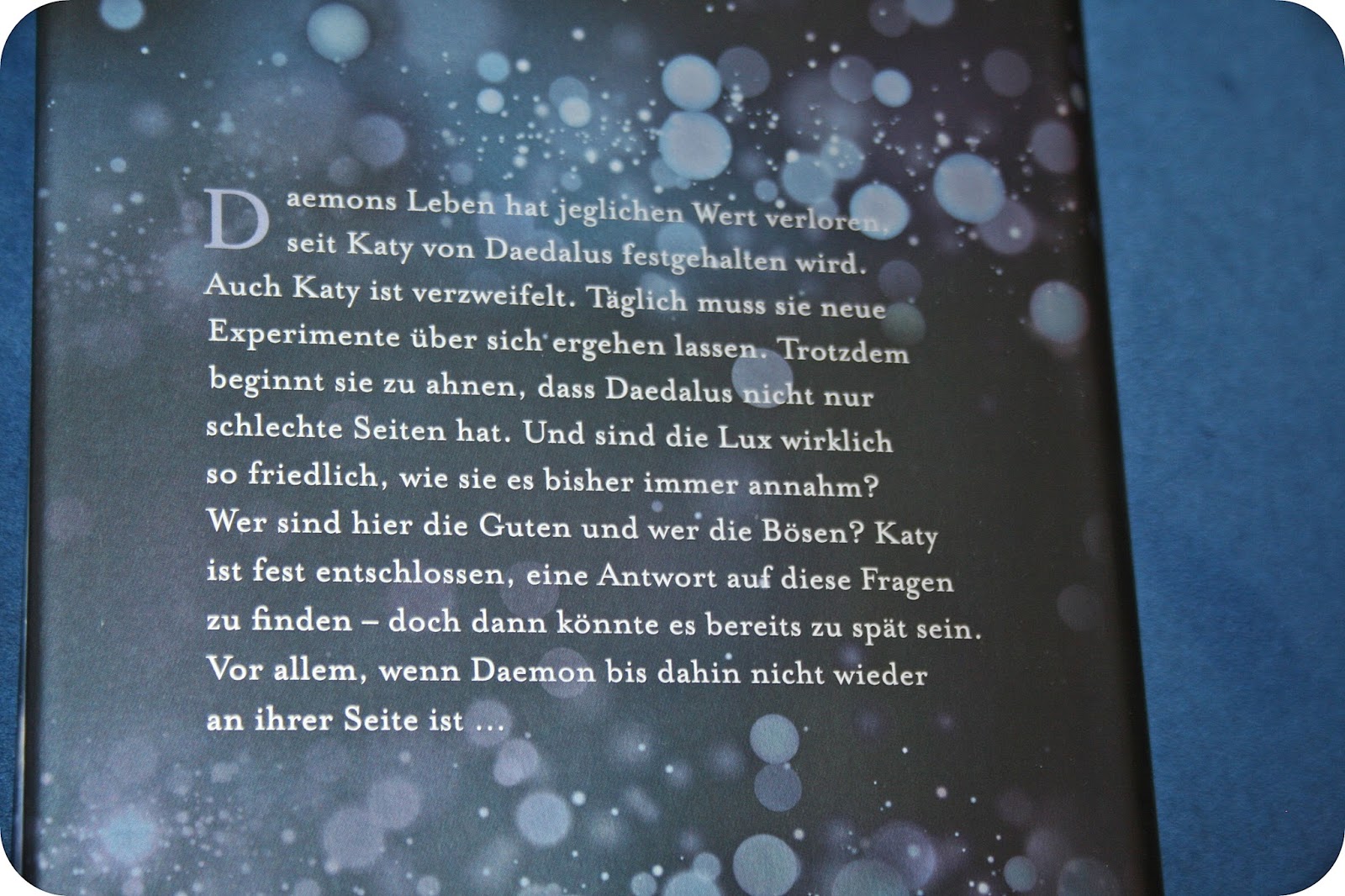 Katy wurde von Daedalus gefangen genommen und man erlebt als Leser/in hautnah mit, was sie dort alles mitmachen muss. In einem anderen Handlungsstrang kommt, zum ersten Mal in der Reihe, nun auch Daemon zu Wort, was ich als tolle Abwechslung empfunden habe. In den Passagen, in denen aus seiner Sicht erzählt wird, bekommt man, zum ersten Mal, wie ich finde, einen tieferen Einblick in seine Gefühls – und Gedankenwelt.