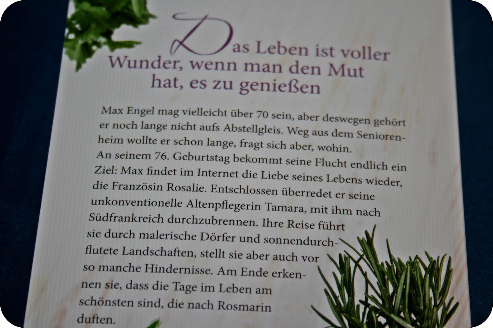 “Rosmarintage” ist eine kurzweilige Geschichte mit tollen Szenen und einem schönen bilhaften Schreibstil, bei dem mich leider manches nicht so richtig überzeugen konnte!