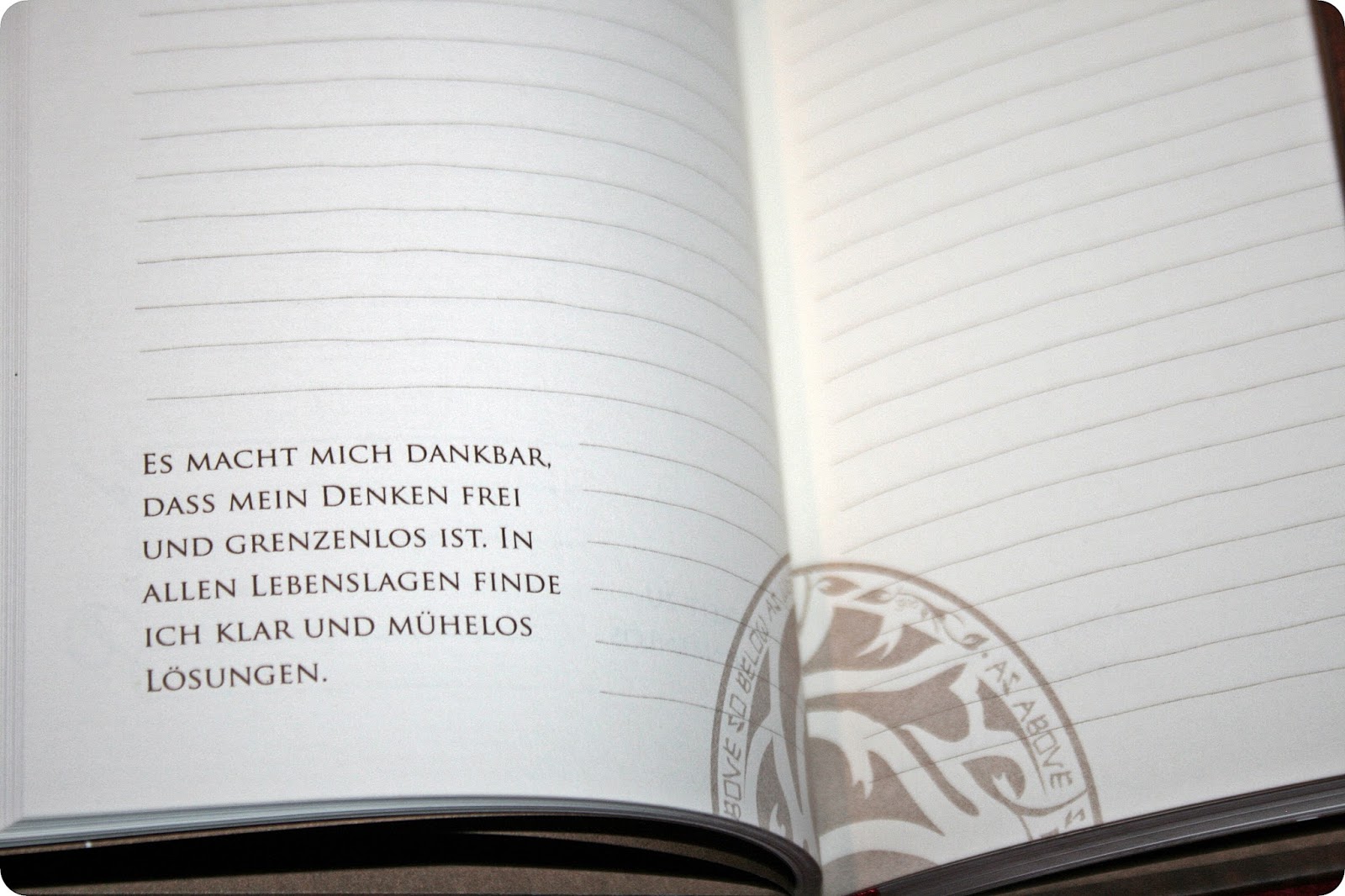 Die Aufmachung des Buches hat mir richtig gut gefallen. Es ist, wie auch “The Secret” in einem schlichten, stilvollen Braun gehalten und hat eine praktische Größe, in der man das Büchlein auch immer dabei haben kann. Der Verschluss des Buches ist mit dem Magneten nicht nur sehr hübsch, sondern auch toll, falls man lose Notizen ins Buch legen möchte.