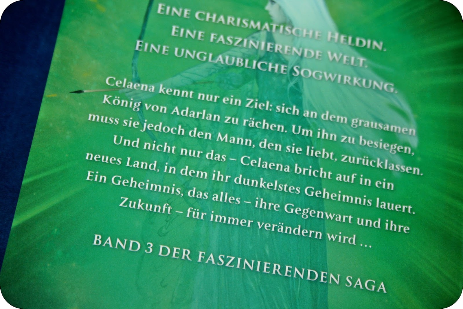 Die Handlung in diesem dritten Band ist gut zu zwei Dritteln deutlich ruhiger, als die actionreichen Geschehnisse, in den vorigen Bänden, aber während dieser ruhigen Passagen erfährt man sehr viel über bestimmte Hintergründe, mehr über Celaena’s Vergangenheit, mehr über die magischen Verwicklungen etc. Dadurch war es nie langweilig und ich habe gespannt verfolgt, was sich noch alles zeigen würde.