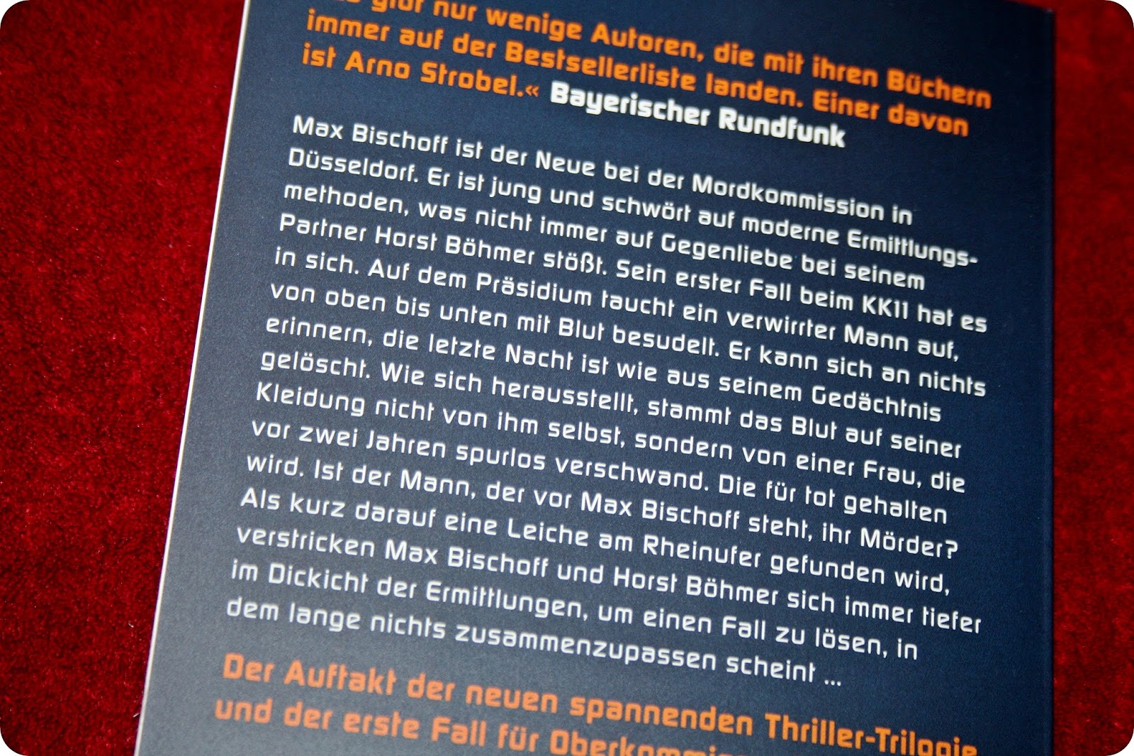 In diesem Buch geht es um den Protagonisten Max Bischoff. Max ist mit Anfang dreißig schon Oberkommissar und er ist der Neue bei der Düsseldorfer Mordkommission. Er liebt das Profiling und schwört auf moderne Ermittlungsmethoden, was bei seinem Partner nicht auf Gegenliebe stößt.