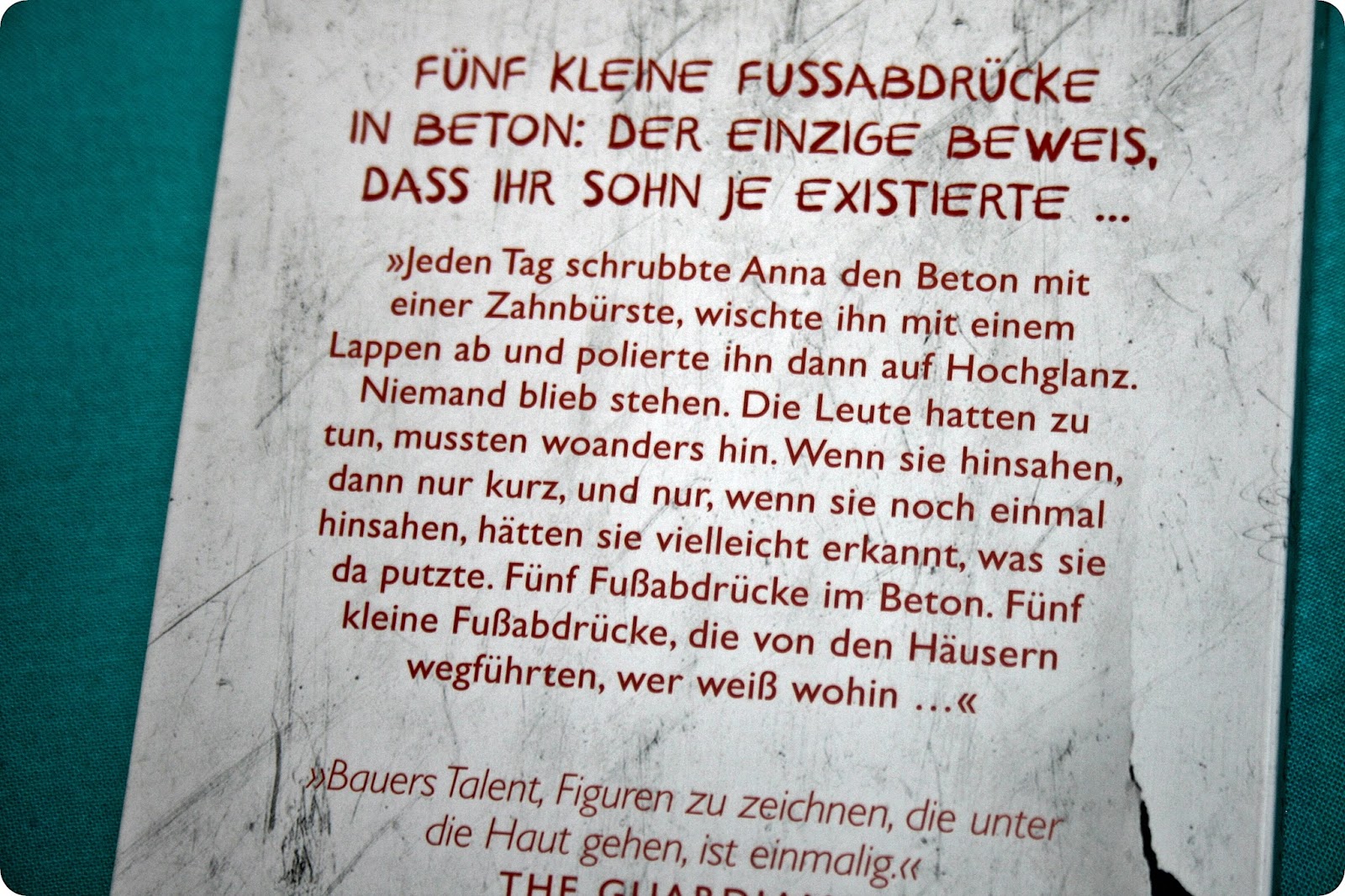 Die Geschichte in “Totenkind” beginnt in mehreren verschiedenen Handlungssträngen. Zum einen lernt der Leser/die Leserin die Protagonistin Anna Buck kennen. Anna sitzt täglich vor einer Werkstatt und poliert fünf kleine Fussabdrücke im Beton. Sie sind das Einzige was ihr von ihrem kleinen Sohn Daniel geblieben ist. Daniel ist eines Tages verschwunden, als sein Vater versehentlich die Haustür offenliess und seitdem fehlt jede Spur von ihm.