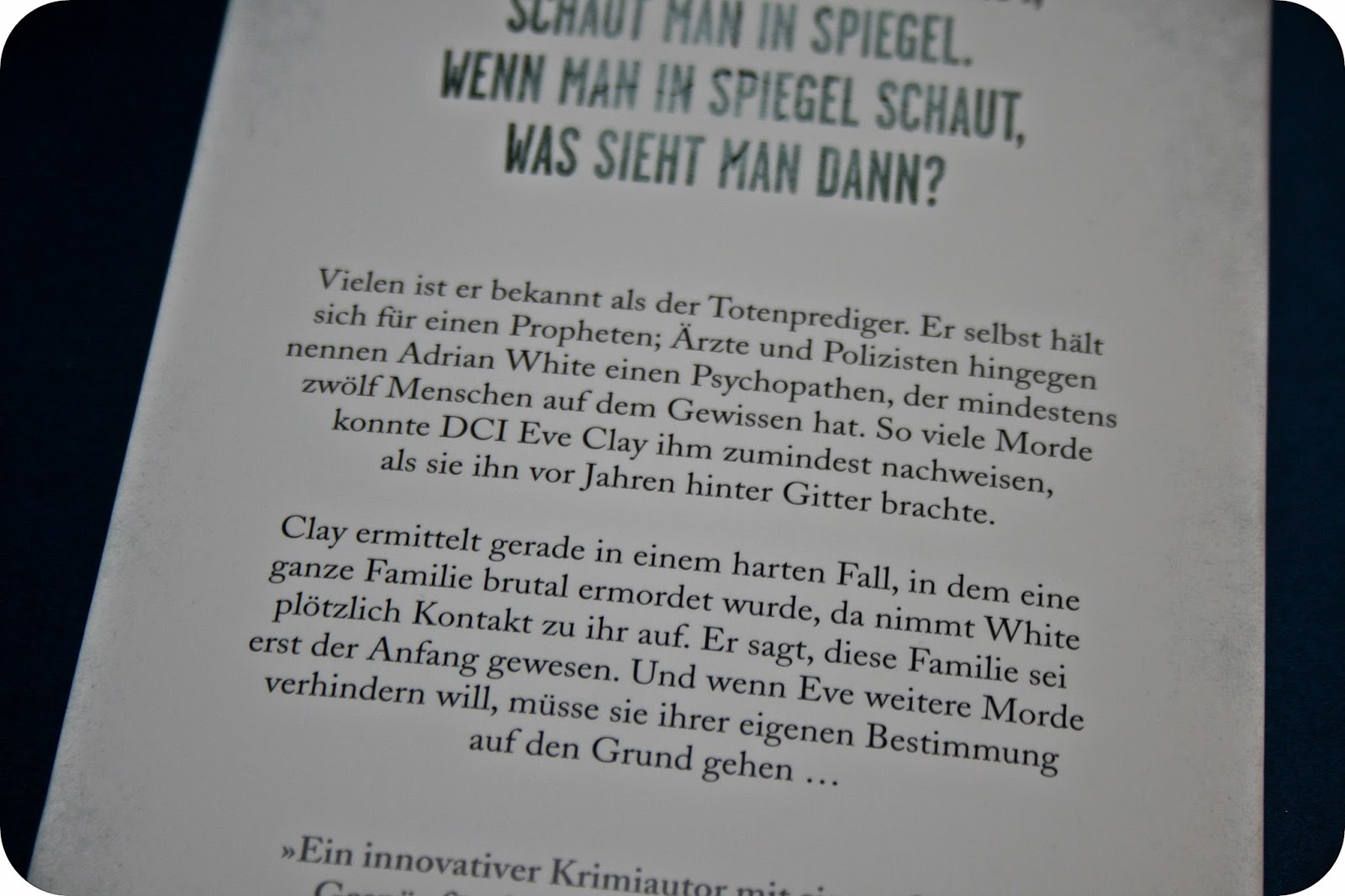 Die Geschichte um den “Totenprediger” Adrian White nimmt hier in Band Eins seinen psychologisch raffinierten und ausgefeilten Anfang, aber es gibt durchaus Potenzial für die weiteren Bände der Reihe, in denen man White sicherlich wiedersehen wird. Auch DCI Eve Clay und die anderen Charaktere bieten eine gute Basis für die nachfolgenden Bände. Das Buch ist in sich abgeschlossen und das Ende habe ich als stimmig und rund empfunden. Es sind keine Fragen offengeblieben und es gab auch noch einen spannenden Showdown!