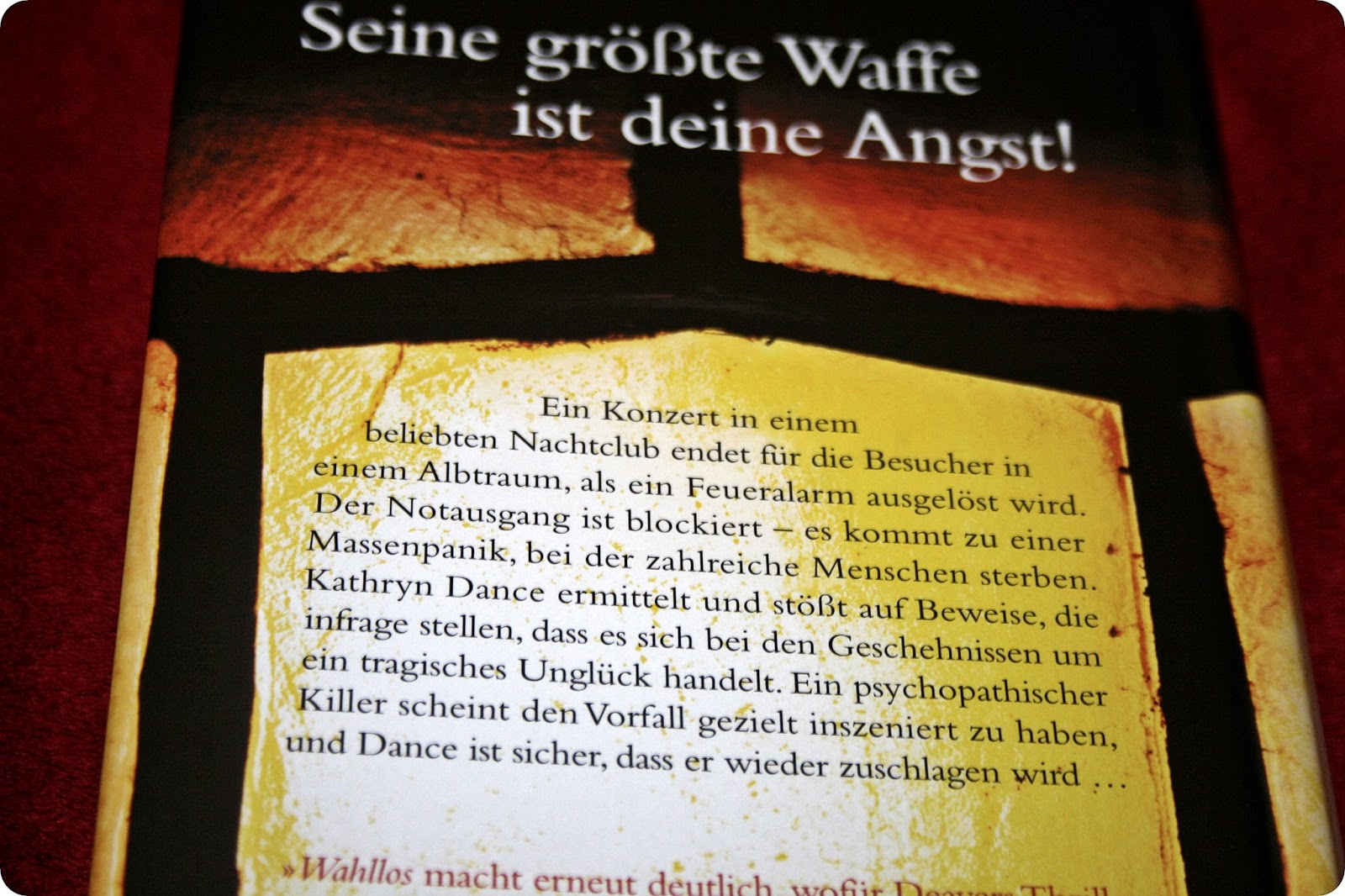 In diesem Band der erfolgreichen Thrillerreihe bekommt es die Ermittlerin Kathryn Dance mit einem albtraumhaften Fall zu tun. Alles beginnt damit, dass in einem Nachtclub, während eines Konzerts der Feueralarm ausgelöst wird und die Notausgänge blockiert wurden. Kurz darauf kommt es zu einer Massenpanik, bei der zahlreiche Menschen zu Tode kommen. Bald darauf zeigen die Ermittlungen, dass ein psychopathischer Täter alles perfide geplant hat und auch noch nicht am Ende ist. Was Kathryn besonders unter Druck setzt ist die Unberechenheit des Täters, wegen der man nicht wissen kann, was dieser als nächstes plant …