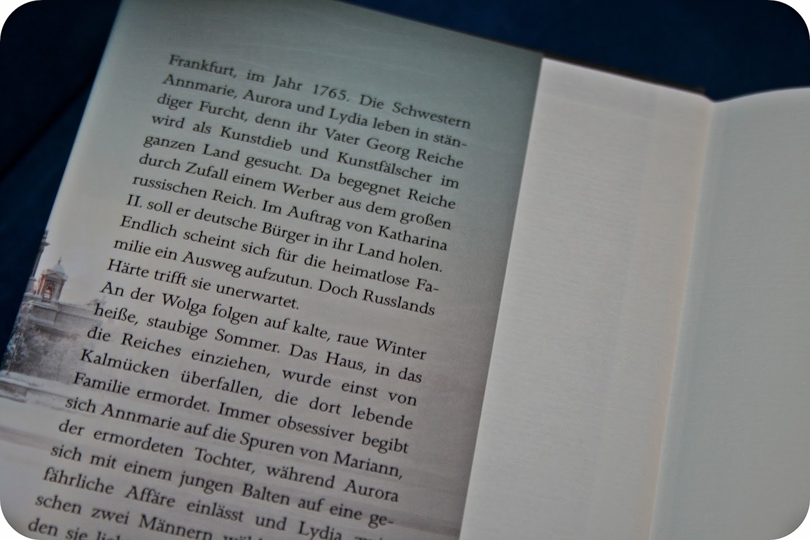 Frankfurt, im Jahr 1765. Als es die Schwestern Annmarie, Aurora und Lydia aus schierer Not an die Wolga verschlägt, wissen sie so gut wie nichts über das riesige Land und seine Bewohner. Voller Naivität stellen sie sich dem rauen Klima, den vollkommen anderen Gesellschaftsregeln und ihrer Lebensaufgabe, dem Aufbau einer neuen Existenz. Doch in der neuen Welt lauern überall Gefahren – Gefahren, unter denen mordende Kalmückenstämme noch die geringste sind …