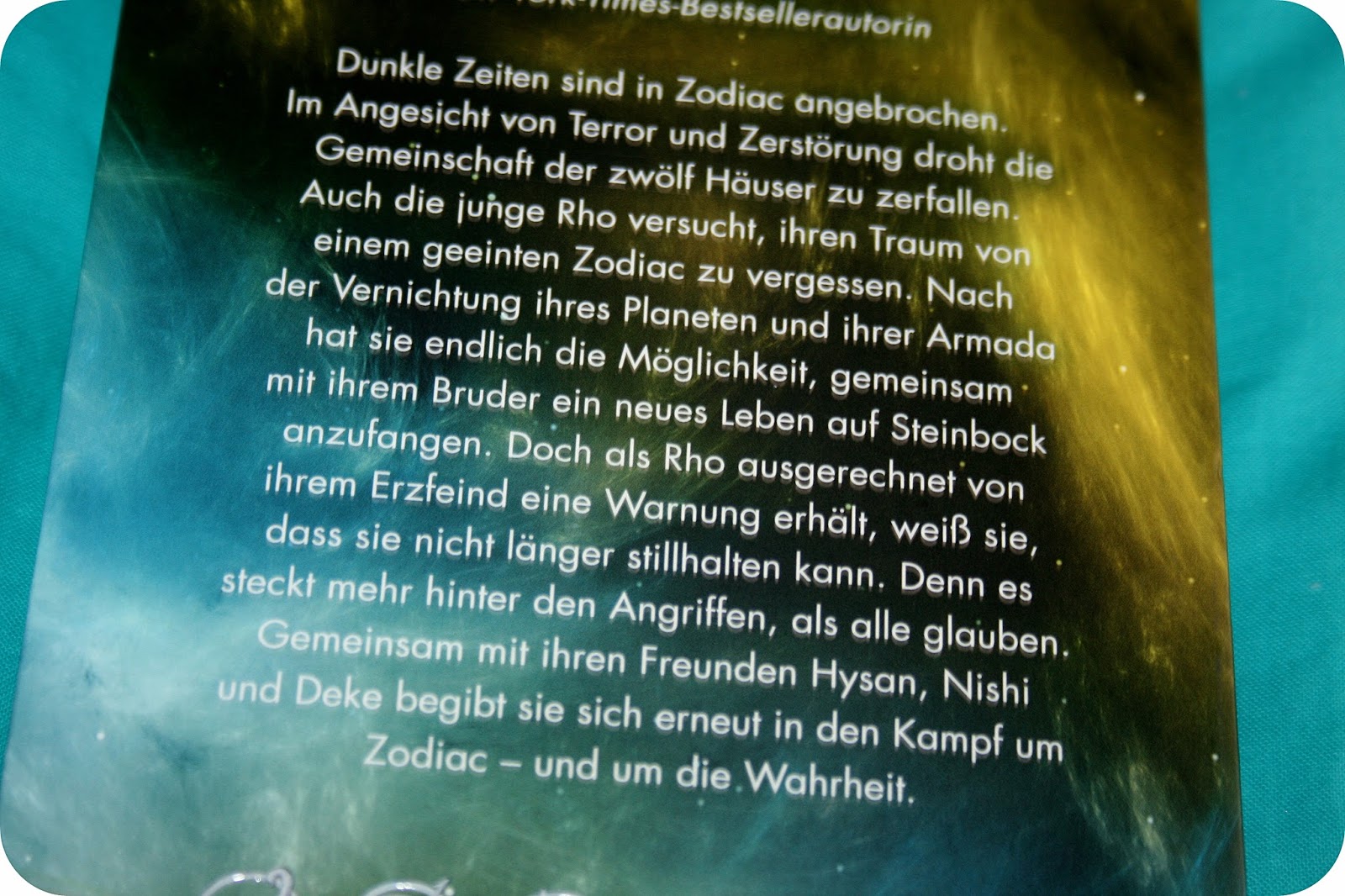 Dunkle Zeiten sind in Zodiac angebrochen. Im Angesicht von Terror und Zerstörung droht die Gemeinschaft der zwölf Häuser zu zerfallen. Auch die junge Rho versucht, ihren Traum von einem geeinten Zodiac zu vergessen. Nach der Vernichtung ihres Planeten und ihrer Armada hat sie endlich die Möglichkeit, gemeinsam mit ihrem Bruder ein neues Leben auf Steinbock anzufangen. Doch als Rho ausgerechnet von ihrem Erzfeind eine Warnung erhält, weiß sie, dass sie nicht länger stillhalten kann. Denn es steckt mehr hinter den Angriffen als alle glauben. Gemeinsam mit ihren Freunden Hysan, Nishi und Deke begibt sie sich erneut in den Kampf um Zodiac – und um die Wahrheit.